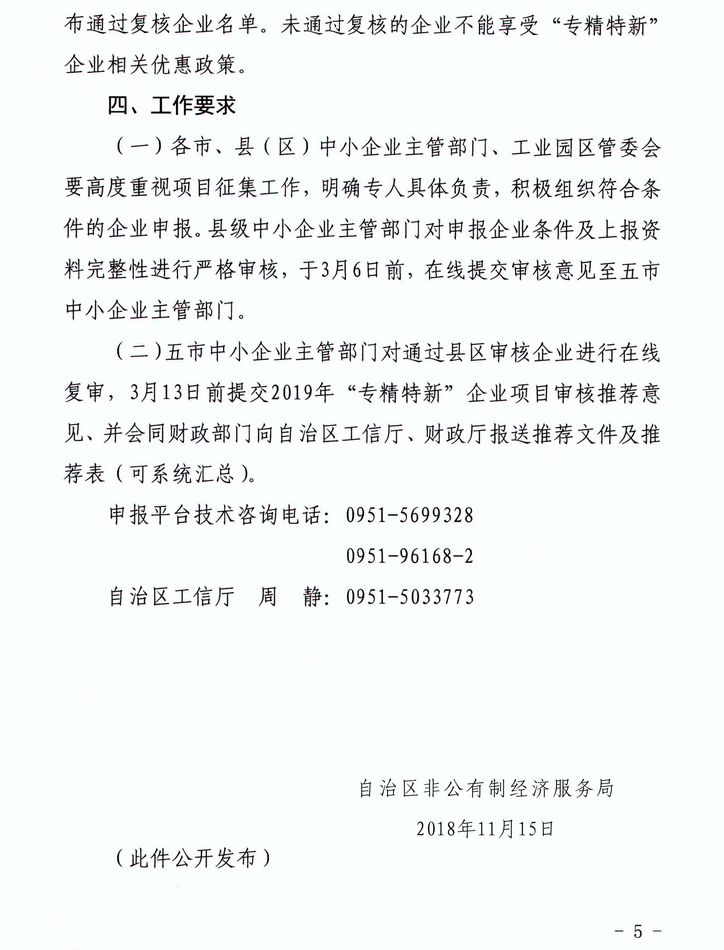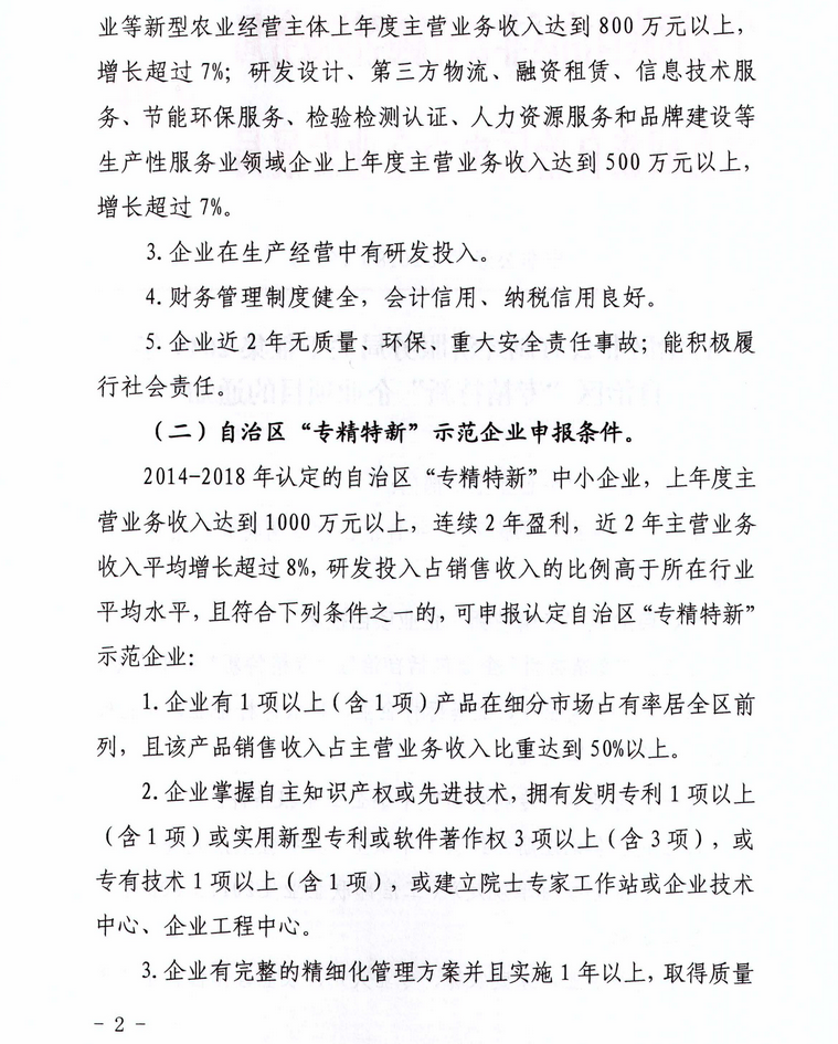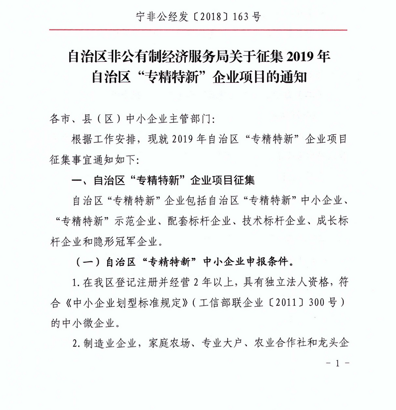 自治区非公有制经济服务局关于征集2019年自治区“专精特新”企业项目的通知