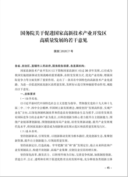 国务院关于促进国家高新技术产业开发区高质量发展的若干意见