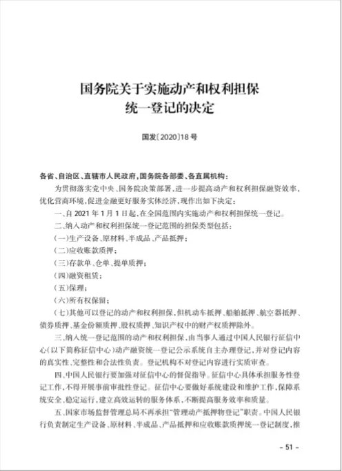 国务院关于实施动产和权利担保统一登记的决定