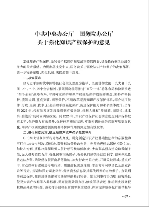 中共中央办公厅 国务院办公厅 关于强化知识产权保护的意见