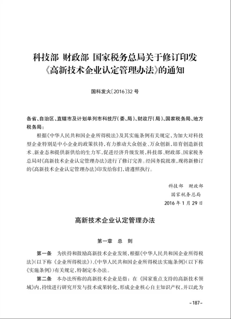 科技部 财政部 国家税务总局关于修订印发《高新技术企业认定管理办法》的通知