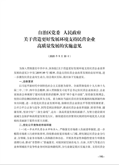 自治区党委 人民政府 关于营造更好发展环境支持民营企业高质量发展的实施意见