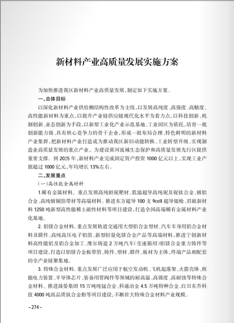 新材料产业高质量发展实施方案