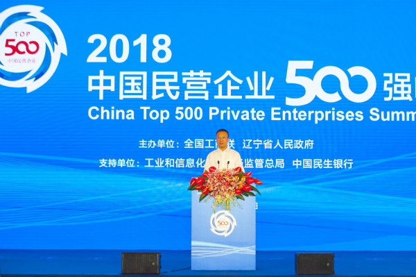 2018年8月29日,2018中国民营企业500强峰会在辽宁省沈阳市举办。全国政协副主席、全国工商联主席高云龙,辽宁省委书记、省人大常委会主任陈求发,市场监管总局党组成员、副局长马正其,工业和信息化部总经济师王新哲出席并分别致辞。中央统战部副部长、全国工商联党组书记、常务副主席徐乐江,国家发展改革委副秘书长周晓飞发表主题演讲。